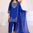 Upgrade your wardrobe with this elegant Blue Chiffon 3 Piece Suit, beautifully designed with multi heavy embroidery on the neck and borders. Perfect for festive events, parties, and formal gatherings, this outfit blends grace with modern sophistication.
